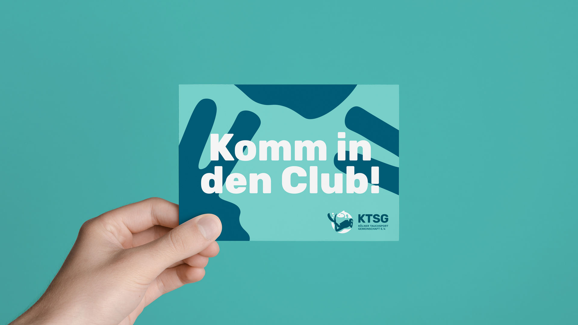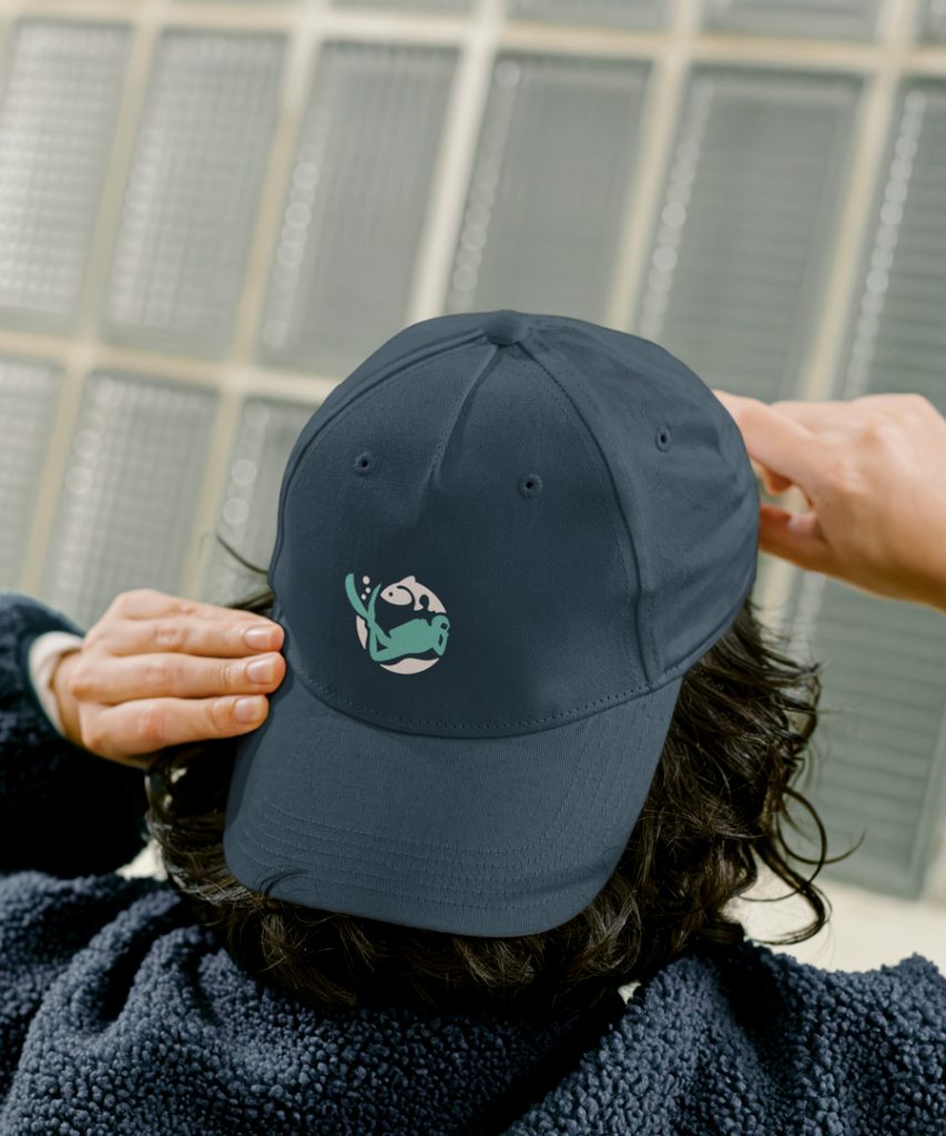 Ausgehend vom Element Wasser entstand eine weiche, organische Formsprache, die sich in Logo, Typografie und Gestaltungselementen widerspiegelt und das familiäre Miteinander visualisiert. Das Pattern basiert dabei auf Tauchzeichen, die Taucher:innen unter Wasser verwenden.